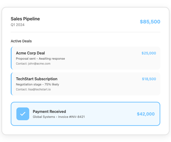 Forget juggling CRMs, spreadsheets, and invoicing tools. XOBBIX centralizes sales and billing, giving your team one clear view of every customer journey, from first contact to final payment.